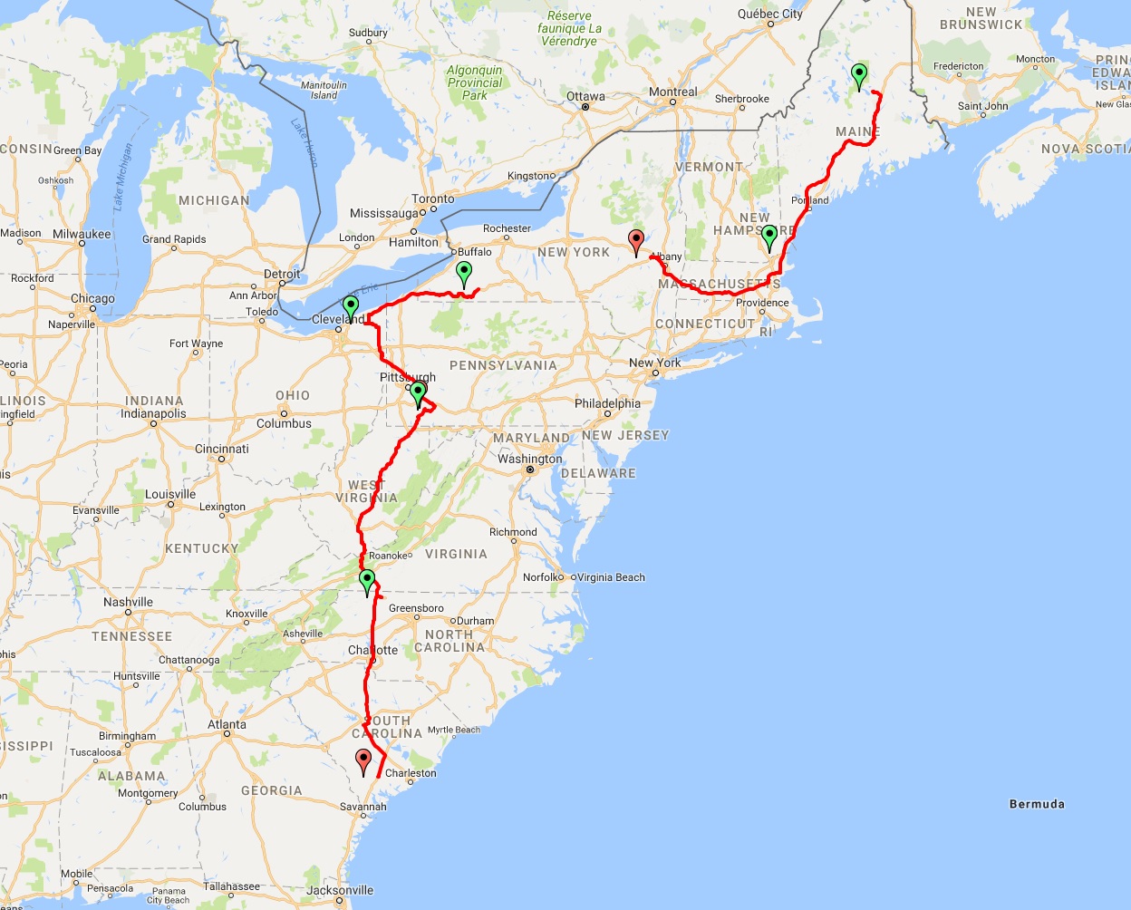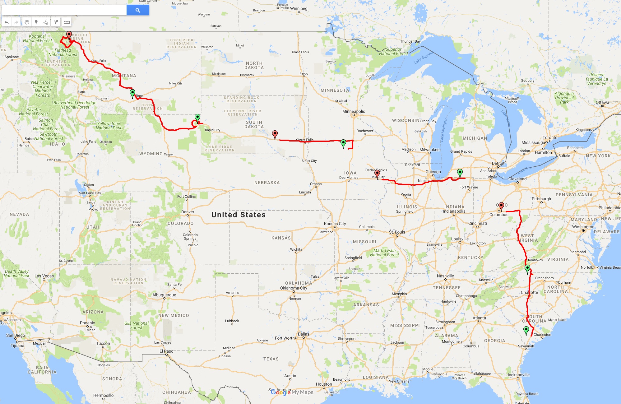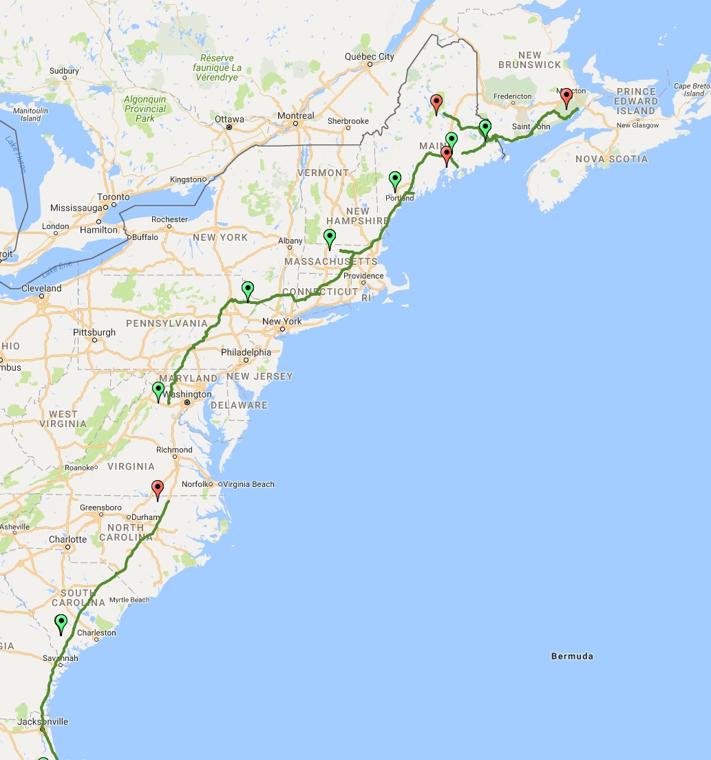 Red and green routes are actual recorded routes, Blue are proposed routes