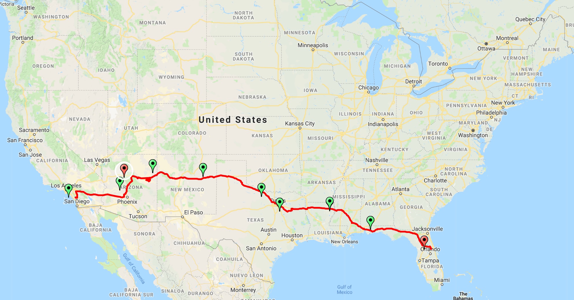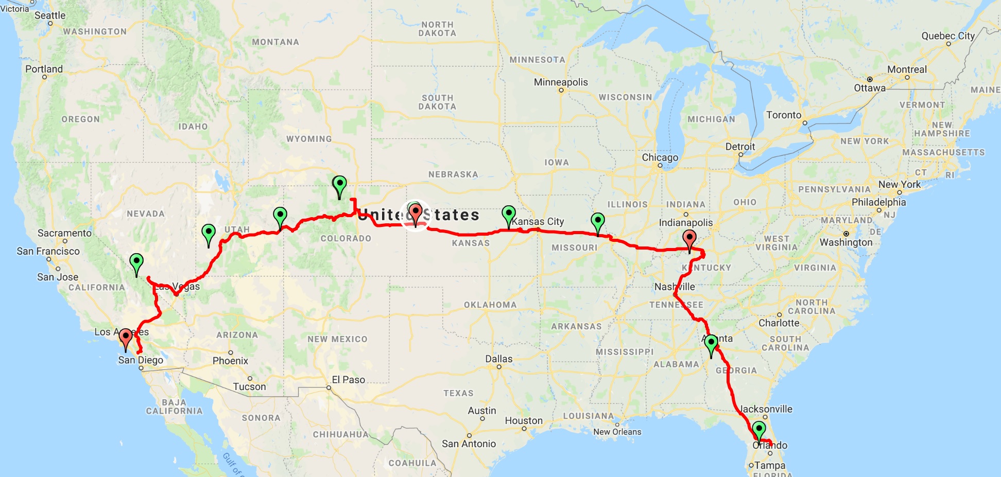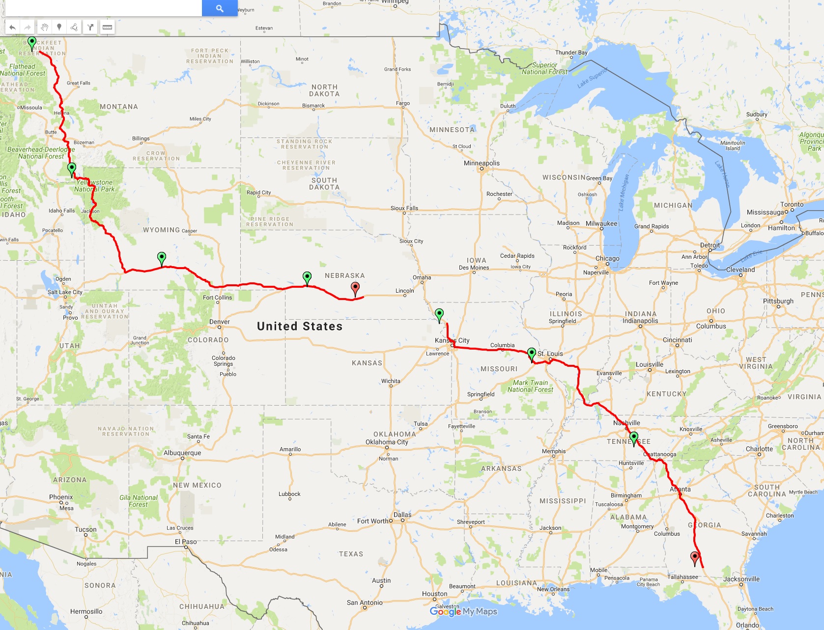 Red and green routes are actual recorded routes, Blue are proposed routes